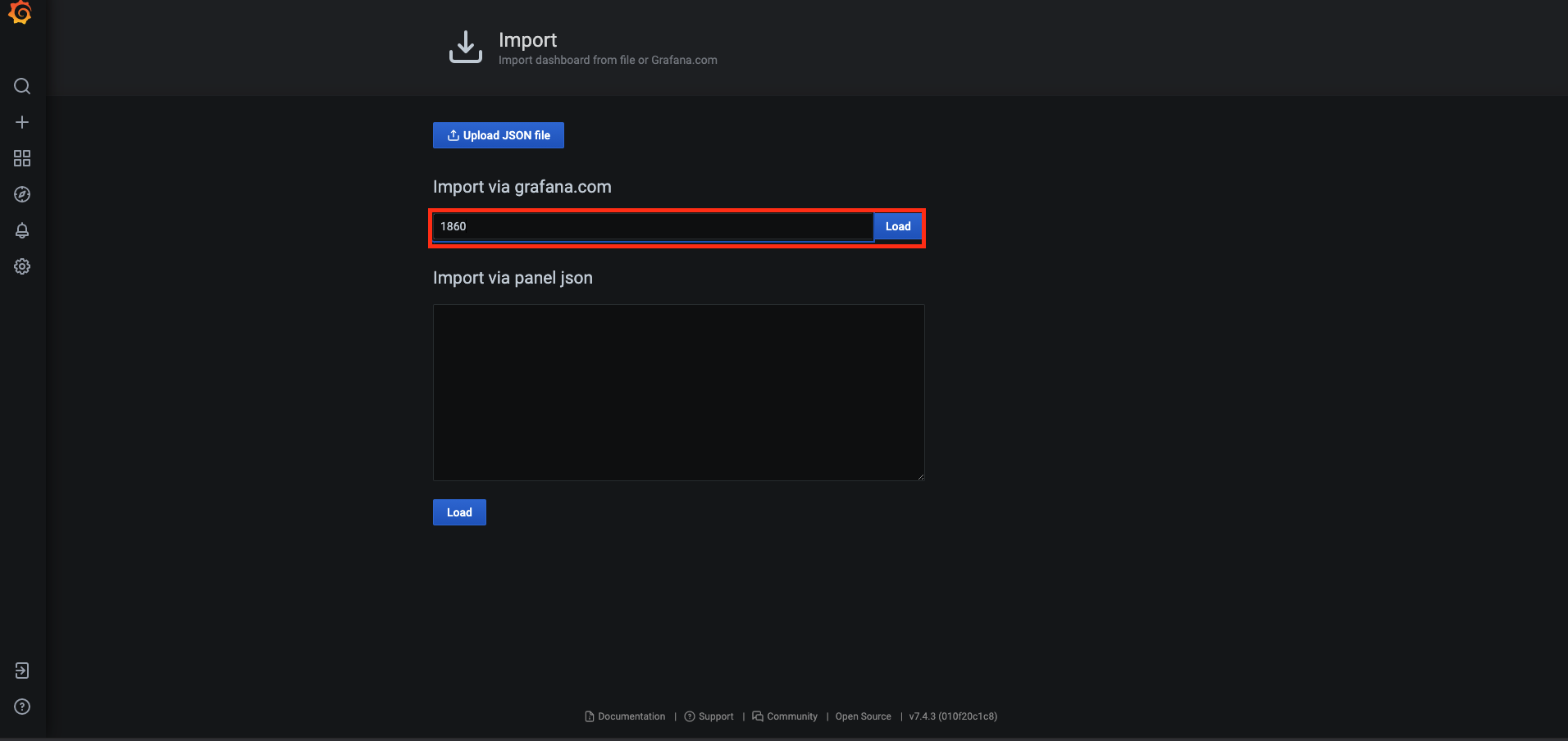 그러면 다음 화면에서 아까 복사한 대시보드 ID를 입력하고 "Load" 버튼을 누른다.