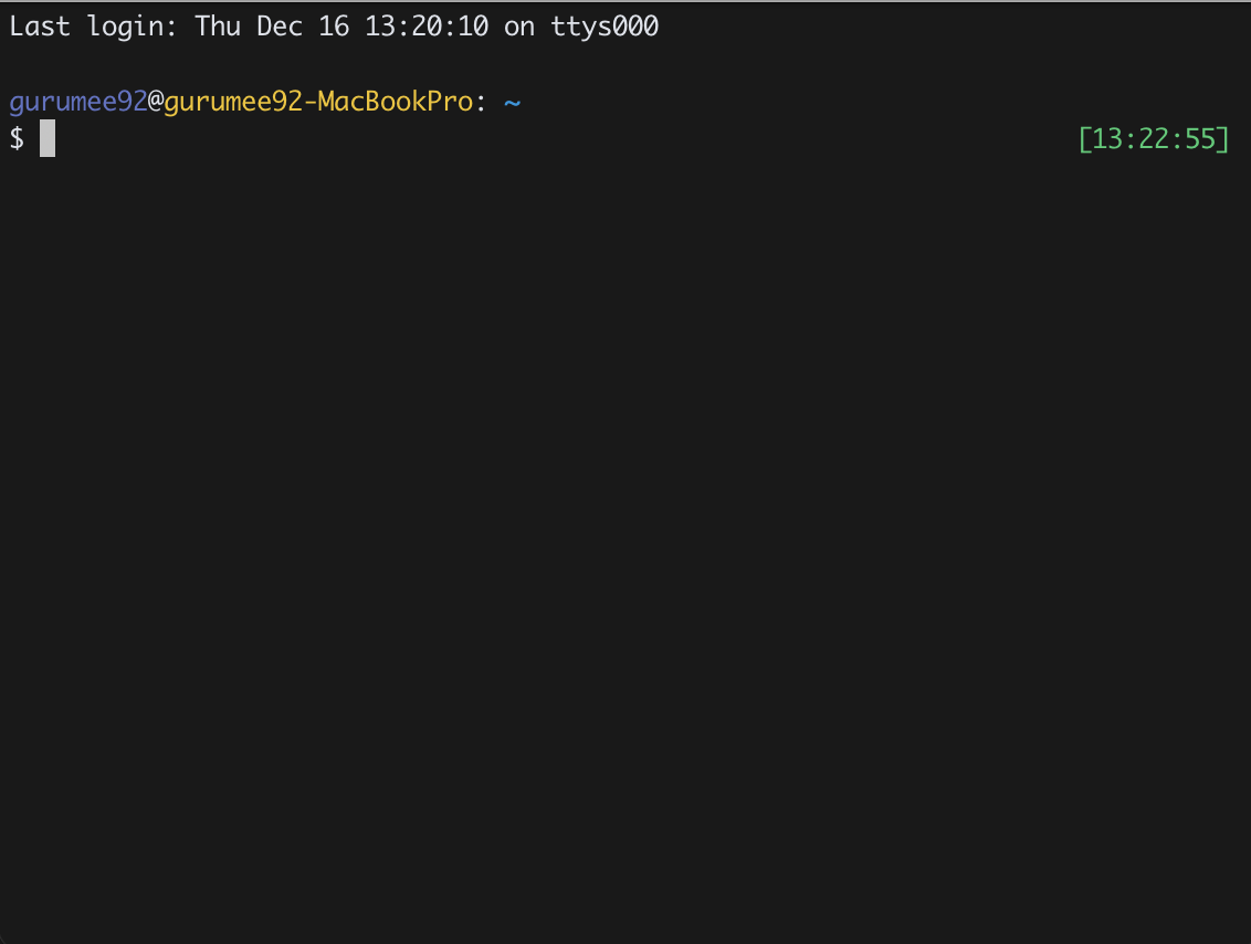 그 후 터미널을 종료했다가 다시 켜보면 다음처럼 터미널이 변경된다.